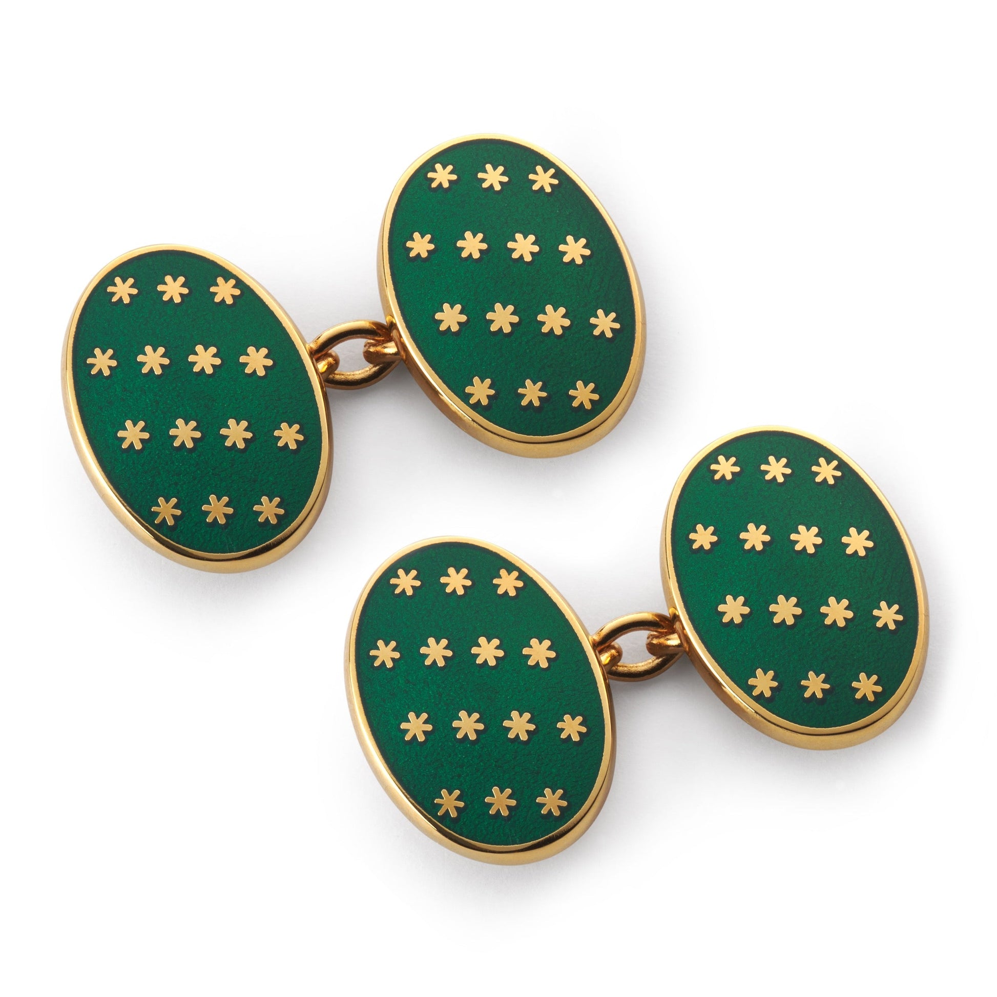 Elevate your style with our exquisite chain cufflinks. Expertly handcrafted in England, these cufflinks feature a classic design enhanced by the vibrant allure of vitreous enamel. The meticulous enameling process involves fusing powdered glass to the base, creating a durable and radiant finish that exudes sophistication.